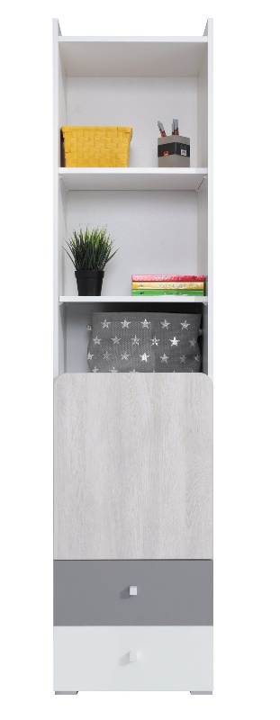 Detská izba beta - biela/dub wilton/šedá. Nábytok z kolekcie Beta už na prvý pohľad upúta spojením odtieňov, ktoré dohromady dokonale ladia. Na nábytok je použitá biela a šedá farba, ktoré sú oživené dekorom dubu wilton. Dizajn je tak veľmi moderný a nadčasový, avšak stále jednoduchý. Vzhľadom k neutrálnym farbám sa bude ľahko kombinovať s ďalšími prvkami v izbe.