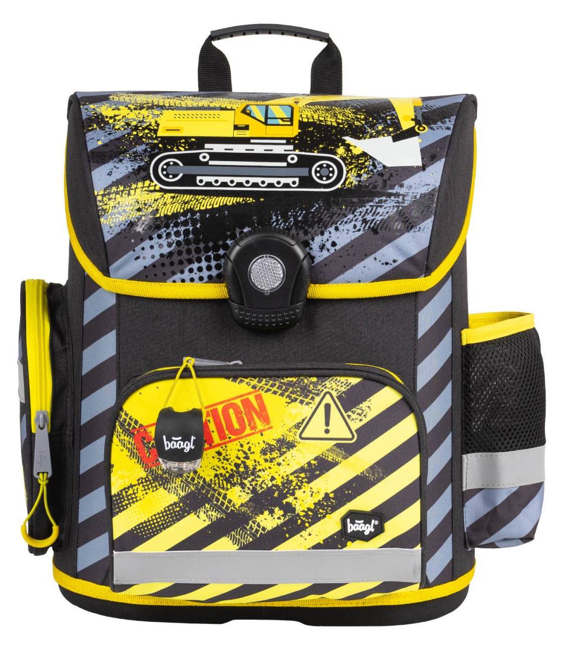 Schulranzen Bagger. Der Schulranzen mit Bagger-Motiv auf der Vorderseite ist für Schulkinder ab der 1. Klasse Grundschule geeignet. Der Schulranzen wurde vom ITC Institut Zlin erfolgreich getestet.