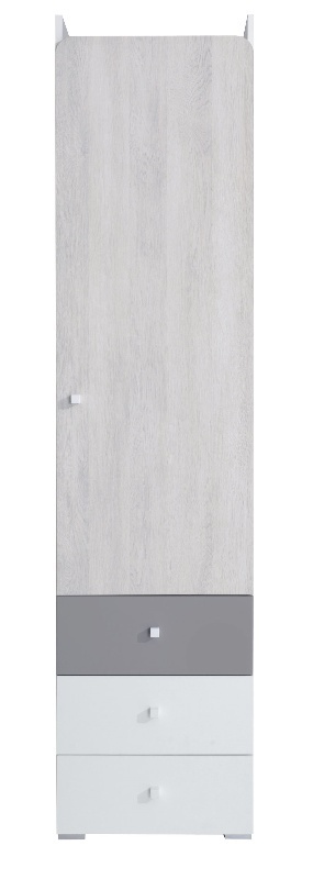 Úzka skrinka beta - biela/dub wilton/šedá. Skrinka Beta už na prvý pohľad upúta spojením odtieňov, ktoré dohromady dokonale ladia. Na skrinku je použitá biela a šedá farba, ktoré sú oživené dekorom dubu wilton. Dizajn je tak veľmi moderný a nadčasový, avšak stále jednoduchý. Ak plánujete obstaranie skrinky pre deti, veríme, že ich zaľúbenie by mala až po dospelosť. Vzhľadom k neutrálnym farbám sa bude ľahko kombinovať s ďalšími prvkami v izbe.
