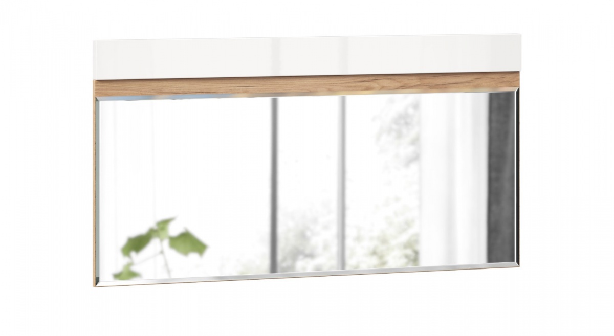 Zrkadlo markus - biely lesk/dub zlatý. Zrkadlo oceníte najmä v spálni. Kombinácia prírodných dubových tónov s bielou farbou čelných plôch prináša do priestoru spálne moderné a zároveň útulné zázemie. Čelná plocha v bielej farbe je v lesku, ktorý dodáva zrkadlu na luxusu. Materiál pre výrobu je lamino, ktorého výhodou je ľahká údržba a dobrá odolnosť proti mechanickému poškodeniu. Rozmery zrkadla Markus sú 62,4x120x2,5cm (v, š, h).
