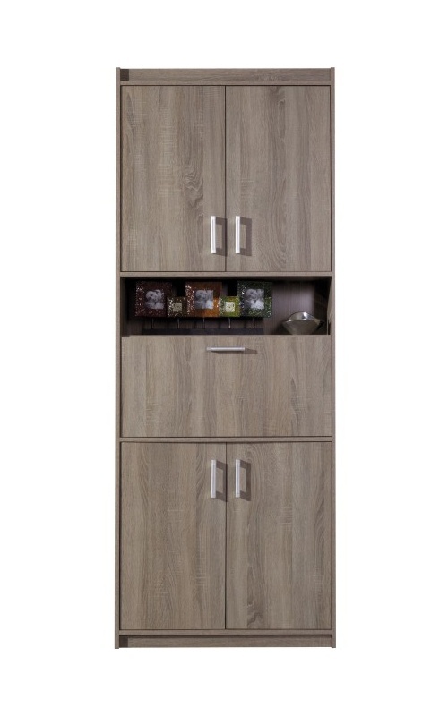Skriňa megane 7 - dub trufla. Ak chcete vybaviť vašu obývaciu izbu nábytkom, ktorý disponuje dostatočným úložným priestorom, ponúkame vám program Megane. Nábytok je vyrobený z lamina vo farbe dub trufla. Pre zostavu Megane je typická jej výška 212 cm. Ide o program variabilný, tzn. jednotlivé diely môžete objednávať samostatne a vybaviť domácnosť podľa vašich predstáv. V ponuke sú rôzne typy vitrín, skríň, regálov. Všetko nájdete v súvisiacich produktoch. Do vitrín je možné doobjednať LED osvetlenie.