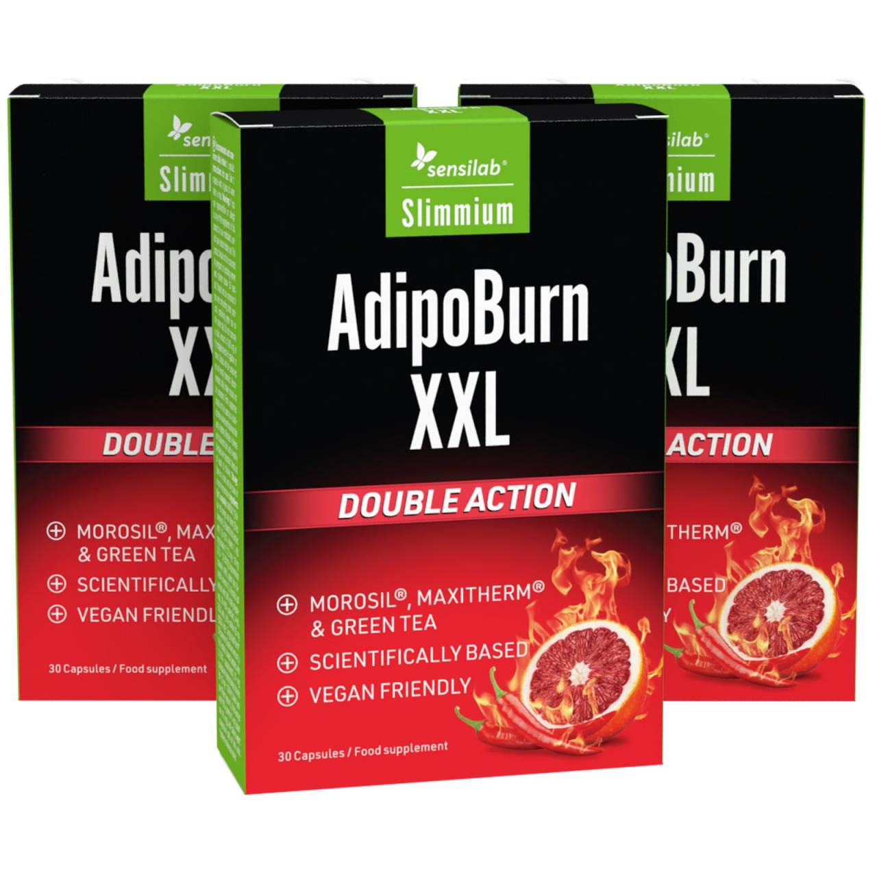 AdipoBurn XXL: 3 caixas. [⭐BESTSELLER] Queimador de gordura abdominal único que visa a gordura visceral. Estimula a queima de gordura e previne o crescimento de células gordas.Aumento da queima de gorduraTem como objectivo a gordura abdominalAumento dos níveis de energia