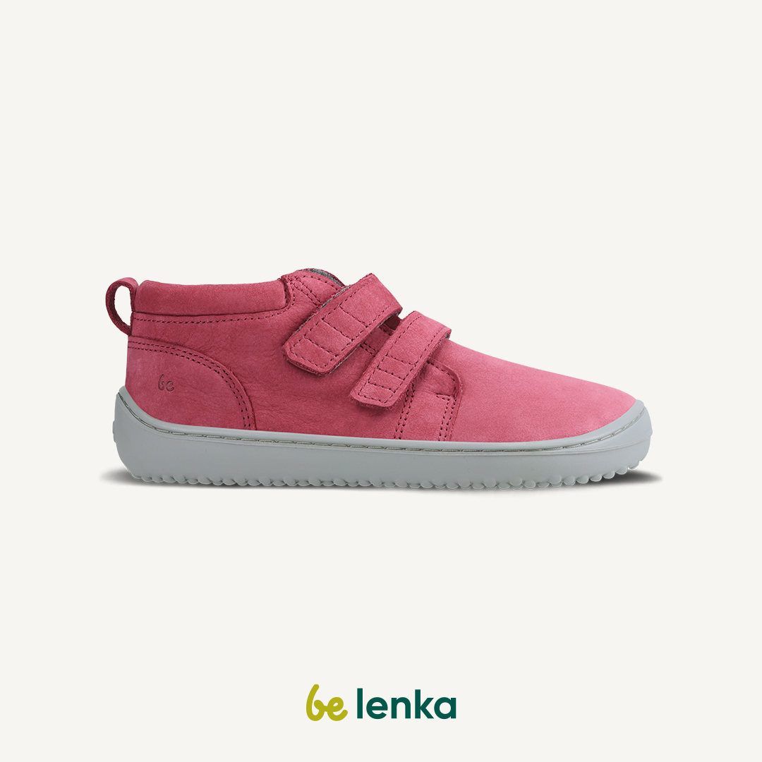 Zapatos barefoot de niños Be Lenka Play - Raspberry Pink. Materiales:Empeine: cuero (nobuk)Forro: textilPlantilla: extraíble (PU reciclado + rizo)Suela: goma (KidsComfort)Producción: EslovaquiaEAN/SKU: %eanorsku%