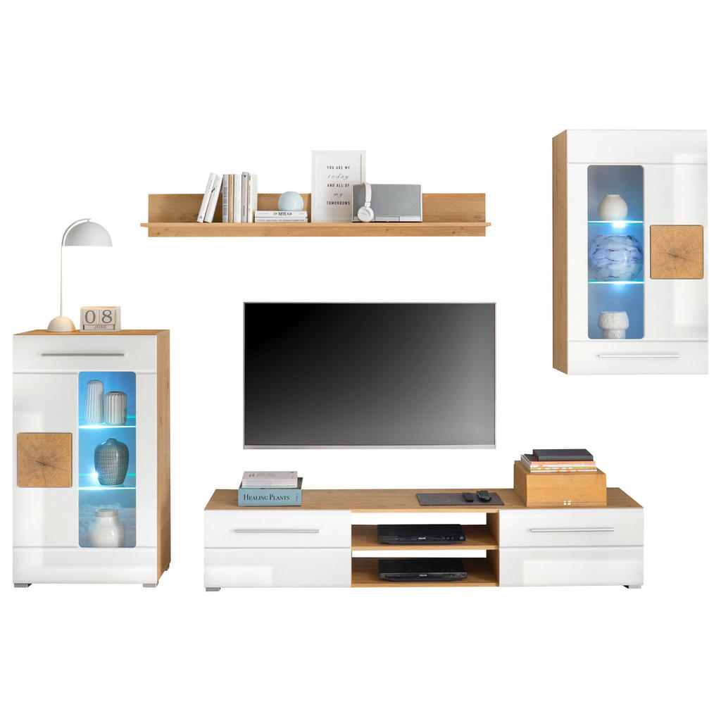 MID.YOU OBÝVACIA STENA, dub artisan, biela s vysokým leskom. **TYP:89-189-T2, K:ARTISAN - **FR:MDF BIELY LESK, VR.OSVET. - **Š/V/H: 240X190X43 CM OBÝVACIA STENA, dub artisan, biela s vysokým leskom - **TYP:89-189-T2, K:ARTISAN - **FR:MDF BIELY LESK, VR.OSVET. - **Š/V/H: 240X190X43 CM