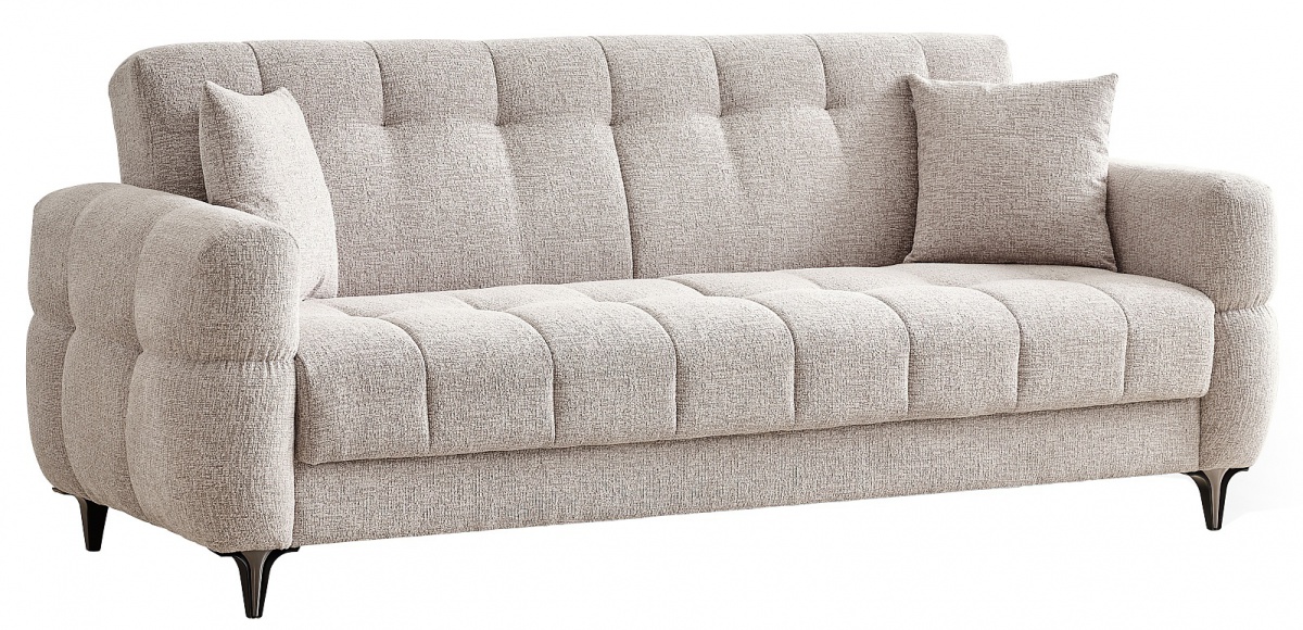 Trojmiestna rozkladacia pohovka s úložným priestorom thierry - šedá. Trojmiestna rozkladacia pohovka z kolekcie Thierry zaujme hneď na prvú dobu svojim minimalistickým, ale veľmi nadčasovým vzhľadom, ktorý perfektne dopĺňajú lesklé nôžky. Poťah z príjemného, ale veľmi pevného a odolného materiálu, v šedej farbe, je doladený prešitím, čo z neho robí elegantný kúsok. Táto pohovka nie je len štýlovým prvkom interiéru, ale navyše ponúka bohatý úložný priestor, ktorý sa skrýva pod sedacou časťou. Prineste do svojej obývačky štipku francúzskej elegancie. S touto kolekciou neinvestujete len do obyčajného nábytku, ale do pohodlia a štýlu Vášho domova.