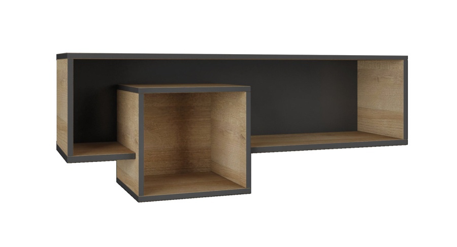 Detská polica nina 12 - dub rivera. Predstavujeme vám kolekciu detského nábytku Nina, ktorá je svojím prevedením vhodná ako do dievčenských, tak chlapčenských izieb. Nábytok je vyrobený z lamina v kombinácii farieb grafit / dub rivera.