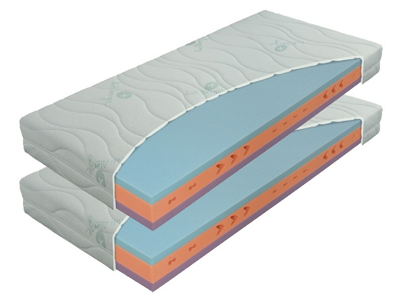 Matrac 1 + 1 zdarma ergoflex 14 - penová - výber rozmeru. Matrac Ergoflex má stredovú dosku zo značkovej peny Eliocell, ktorá zaručuje dobré kopírovacie vlastnosti a pevnosť. Obe ložné plochy tvoria aj značková pena Eliocell, kde jedna z nich je mäkčená (menej tuhá strana matraca). Perforácia jadra poskytuje zmäkčenie v oblasti ramien a bedier najmä pri spaní na boku, súčasne zvyšuje jeho priedušnosť a ventiláciu. Možností výberu tuhosti ložnej plochy sa potom minimalizuje aj riziko zlej voľby tuhosti matraca. Poťah Dryfast je snímateľný, deliteľný na dve časti a prateľný do 60°C. Matrac odporúčame uložiť na priedušný podklad, lamelový rošt, ktorý podporí jej anatomické vlastnosti a predĺži životnosť.