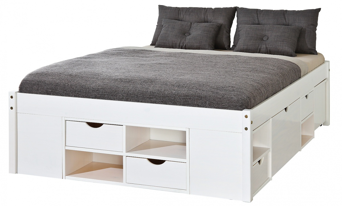 Túžite po štýlovej, ale praktickej manželskej posteli, ktorá má čo ponúknuť? Posteľ z kolekcie Diablo je božskou voľbou do každej domácnosti, nehľadiac na štýl interiéru. Jedná sa o super praktickú posteľ, ktorá je funkčná a uľahčí Vám život. Je opatrená 2 výsuvnými nočnými stolíkmi na kolieskach, takže s nimi môžete ľahko manipulovať. Každý stolík je opatrený 2 zásuvkami, ktoré určite oceníte. Z každej strany nájdete hlbokú zásuvku, malé zásuvky a priehradky. Predná časť postele je tiež vybavená 4 priehradkami. Zásuvky si môžete podľa ľubovôle prekladať, a vytvoriť tak naozaj unikátny a osobitý kúsok. Úložného priestoru táto posteľ ponúka naozaj veľa a je prispôsobená tak, aby čo najviac vyhovovala vašim požiadavkám a nárokom. Povrch dreva bol upravený bielym lakom. Vďaka tejto úprave je ľahko viditeľná kresba dreva. Súčasťou postele je lamelový rošt, matrac je ale potrebné zakúpiť samostatne. Vhodné typy nájdete nižšie v súvisiacich produktoch.