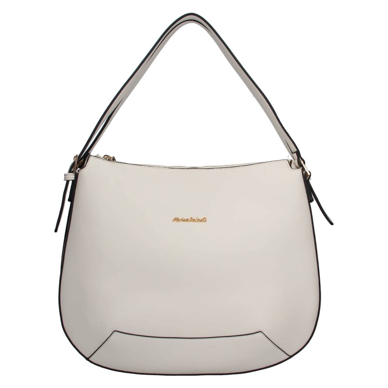Dámska kabelka Marina Galant Corey - biela. Elegantná dámska kabelka značky Marina Galanti! Predstavujeme Vám dámsku kabelku talianskej značky Marina Galant, ktorá zaujme svojím elegantným tvarom. Kabelka sa zapína zipsom a jej vnútorná časť je podšitá látkou s logom značky. Vnútorný priestor kabelky je nedelený a po jeho stranách nájdete dve otvorené vrecká na drobnosti a vrecko na zips. Súčasťou kabelky je odnímateľný a nastaviteľný popruh cez rameno.