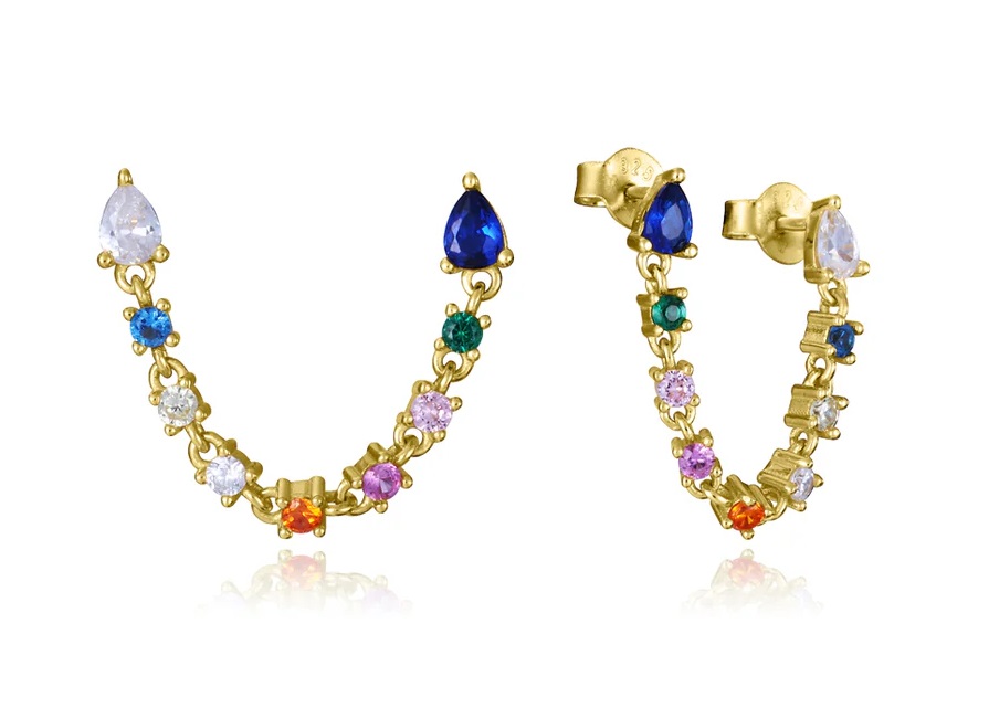 Viceroy Pozlátené retiazkové náušnice s farebnými zirkónmi Trend 9132E100-39. Šperk je dodávaný v originálnom balení.